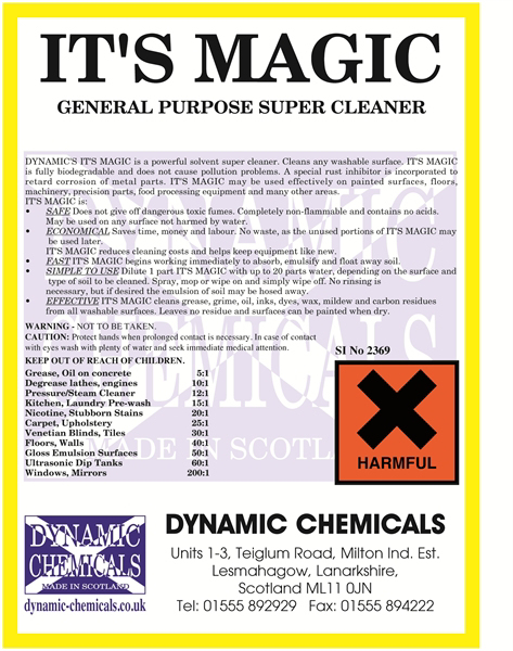 Its Magic is excellent for cleaning modern kennel walls. Also excellent for cleaning lanolin from emulsion painted walls or radiators. Safe on all washable surfaces.