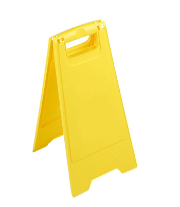 The A-Frame is made of durable Yellow plastic. The PS 123 is an economical A-Frame. Plain, un-printed, folding safety sign which you can either print your own message on or apply your own designed vinyl lettering or decals. The sign is designed for mobility, folds flat so easily carried, folds to fit or hang on cleaners trolley, easily stored flat in a van and quickly erected into A-Frame with on hand. We stock a range of various quality and types of floor signs with various messages, and in different languages, some tri-lingual signs.